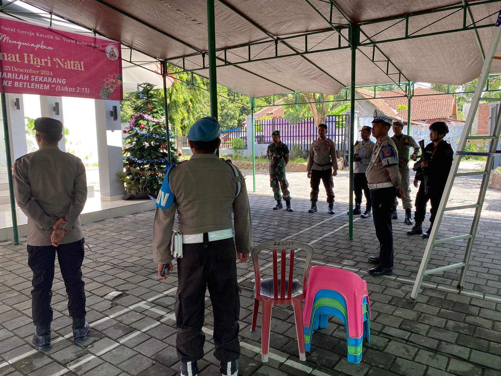 Kota Bima, NTB (24 Desember 2024) – Dalam rangka memastikan keamanan dan kenyamanan umat Kristiani yang akan merayakan Natal, Pos Pengamanan (Pos PAM) Raba Operasi Lilin Rinjani 2024 Polres Bima Kota melaksanakan patroli di sekitar lingkungan Gereja Katolik Santo Yusuf dan Gereja GMIT Bethel Raba, Kota Bima, pada Selasa, 24 Desember 2024, sekitar pukul 10.00 WITA.