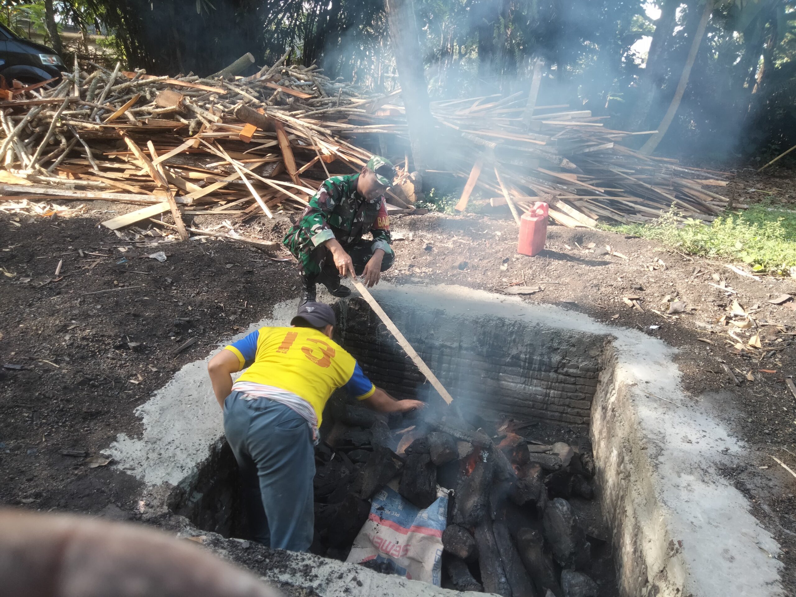 Babinsa Desa Langko Tinjau Usaha Arang Kayu Warga