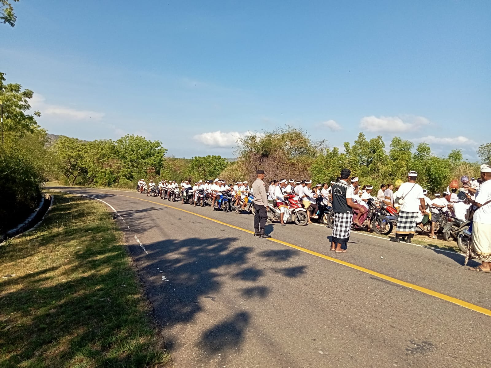 BHABINKAMTIBMAS DESA KOKARLIAN AMANKAN KEGIATAN MELASTI DALAM RANGKAIAN UPACARA NGENTEG LINGGIH